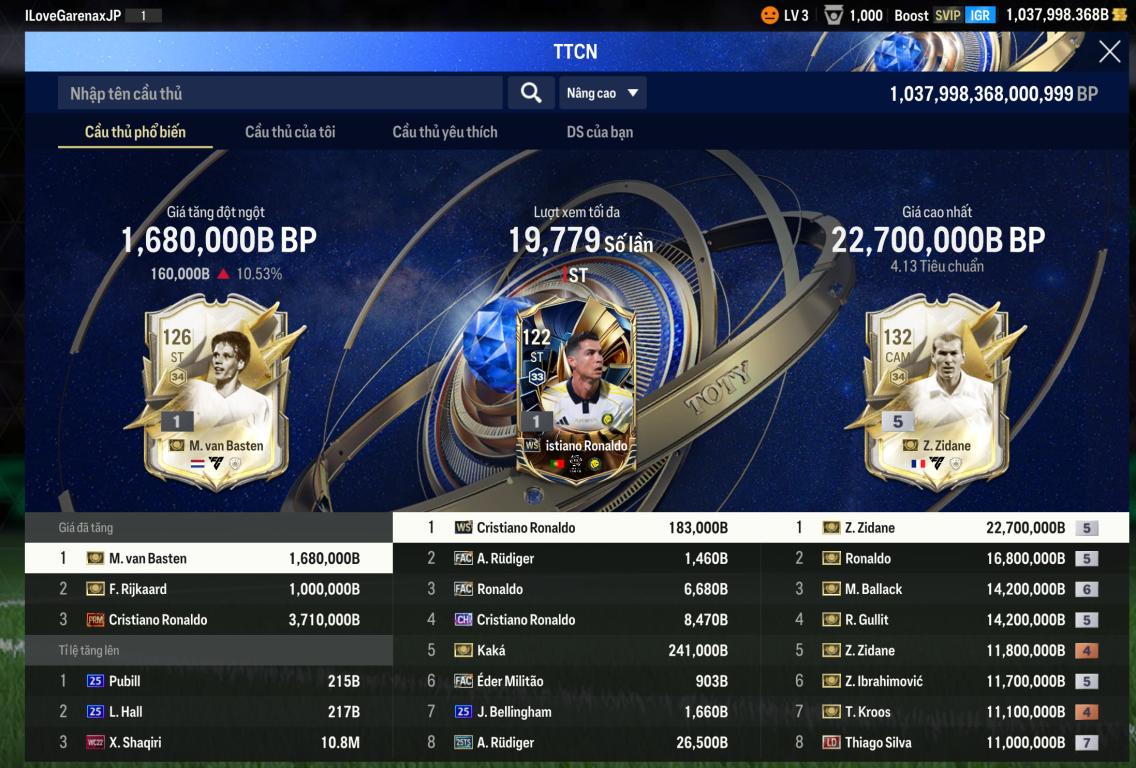 Acc 1037k tỷ BP Trắng