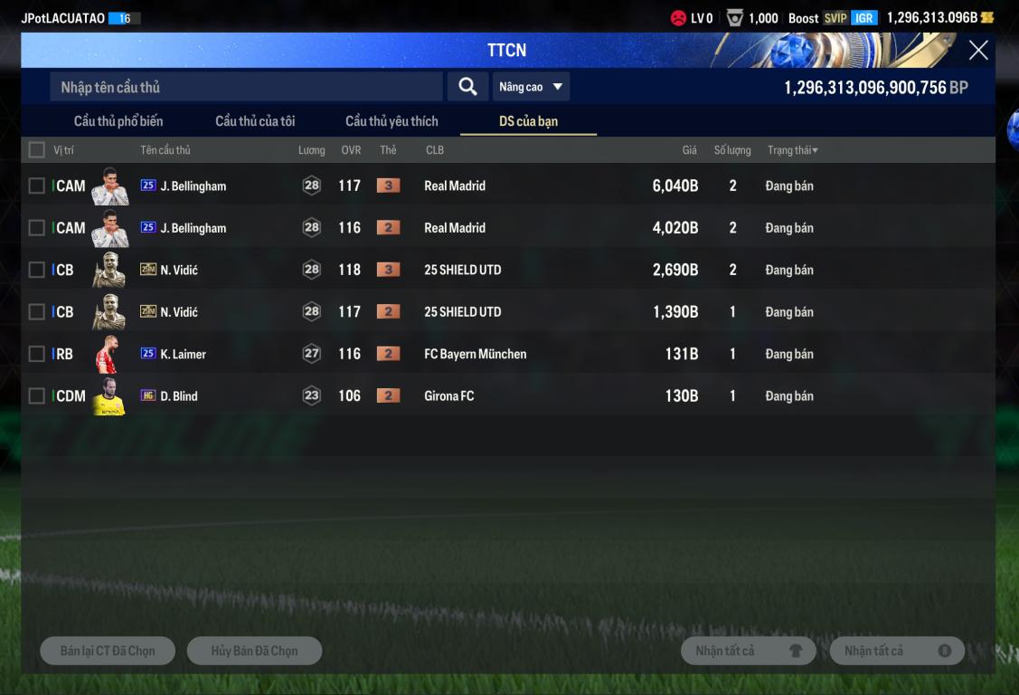 Acc 1296k tỷ BP Trắng - đổi dc MNF