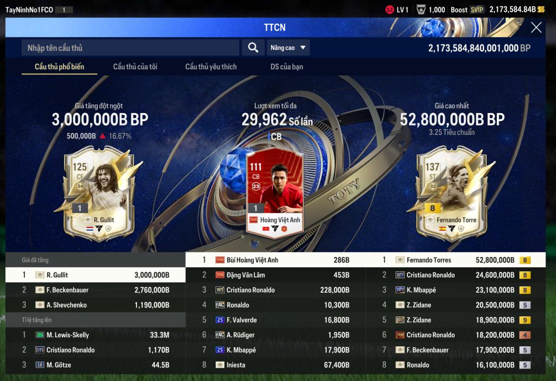 Acc 2tr173k tỷ BP Trắng
