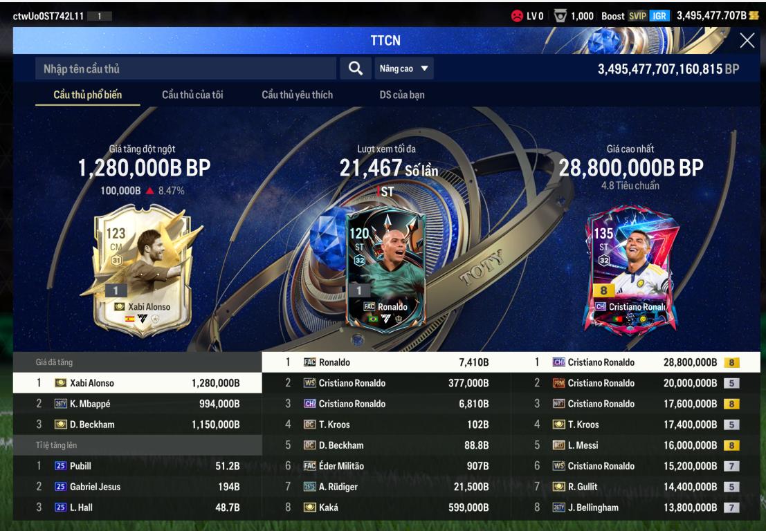 Giờ Reset Cầu Thủ