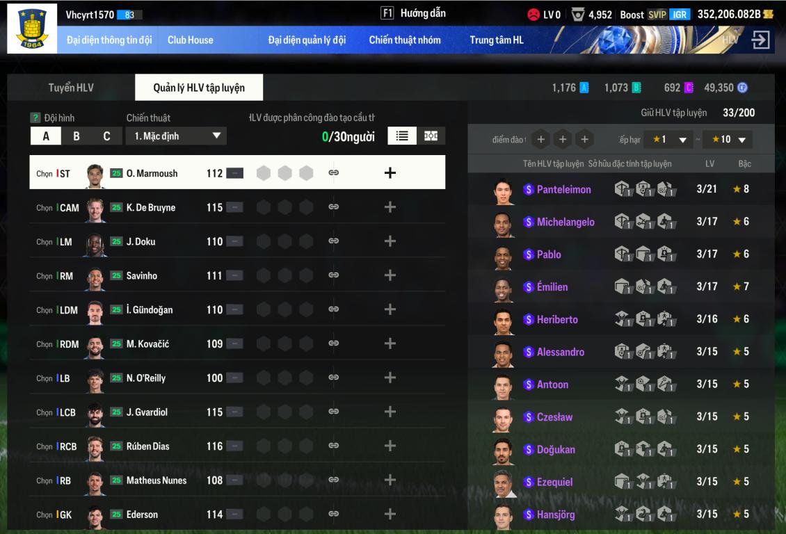 Acc 352k2 tỷ BP Trắng - 212k đào tạo