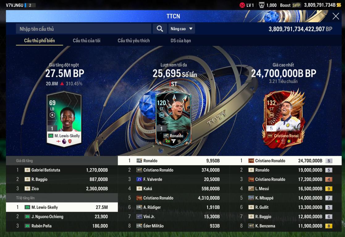 Giờ Reset Cầu Thủ