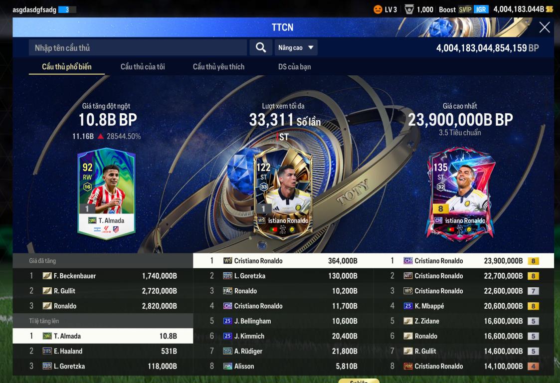 Acc 4tr tỷ BP Trắng - đổi dc MNF