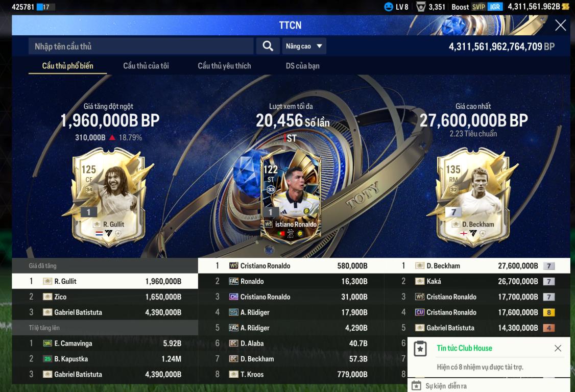 Giờ Reset Cầu Thủ