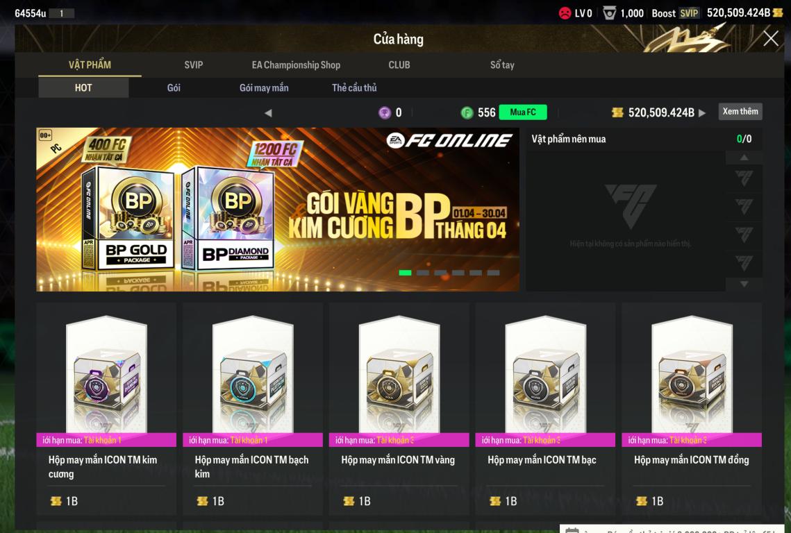 Acc 520k BP Trắng + 550 FC