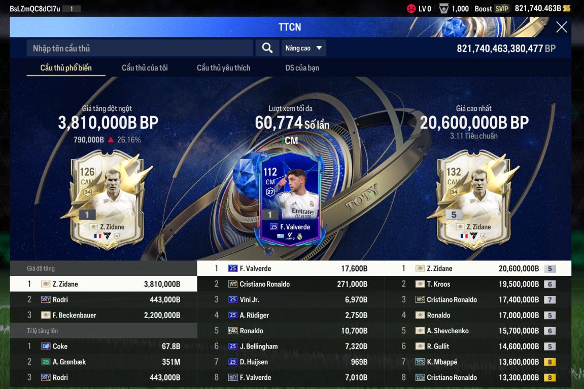 Acc 821k7 tỷ BP Trắng - đổi dc MNF