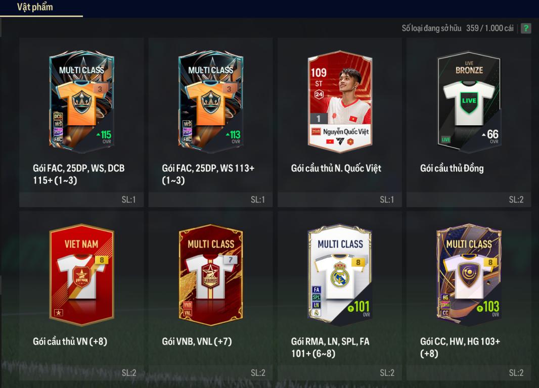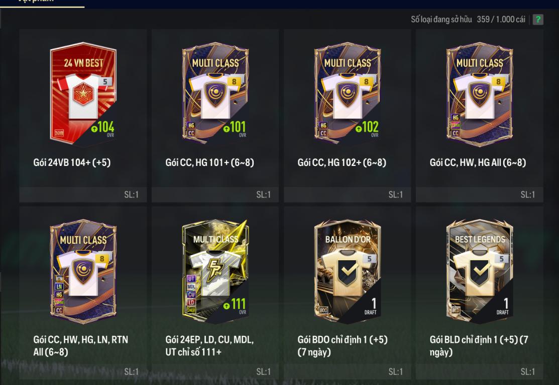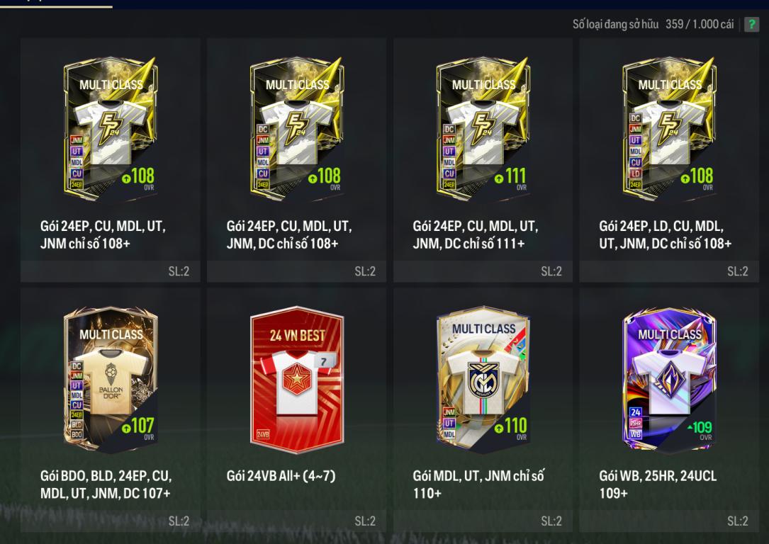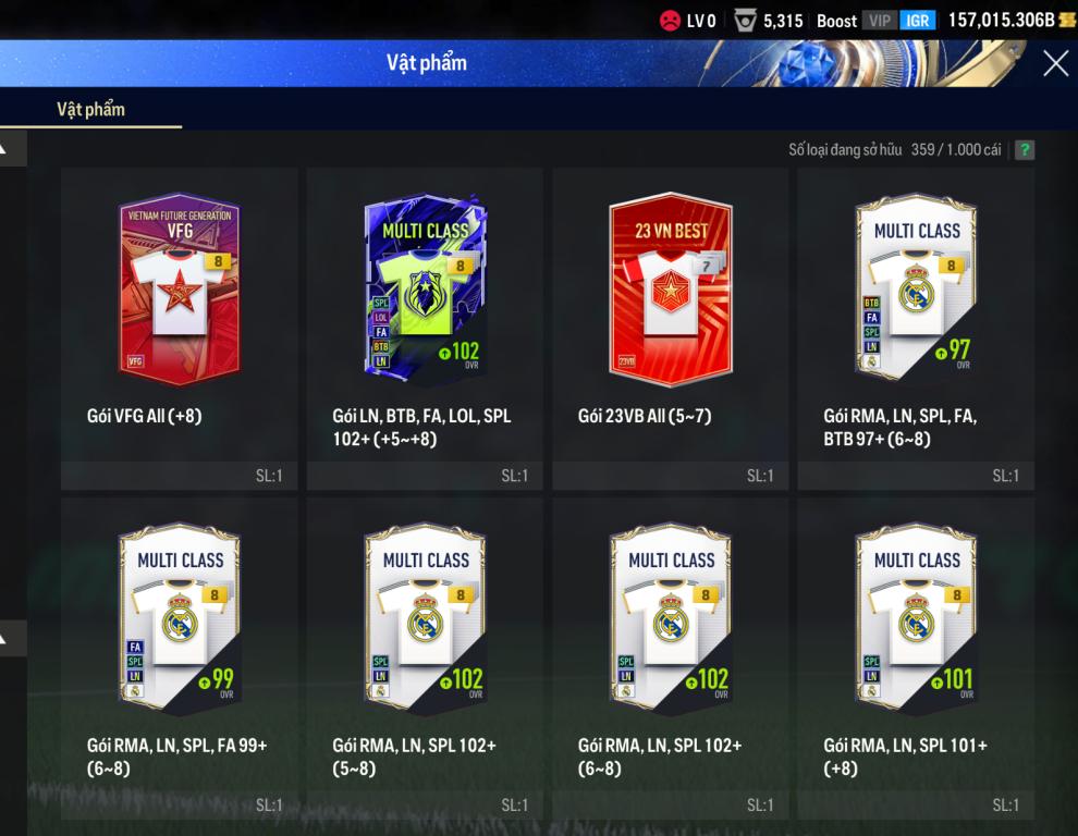 Acc mở thẻ random có sẵn : ~ 150k tỷ BP Trắng + ~ 1k5 thẻ - ~300k STP~ 250k TC - nhiều HLV + thẻ bv -