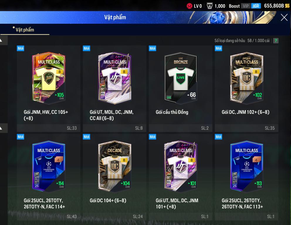 Acc mở thẻ random có sẵn : ~ 600k tỷ BP + ~ 160 thẻ xịn sò