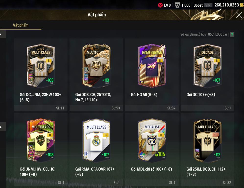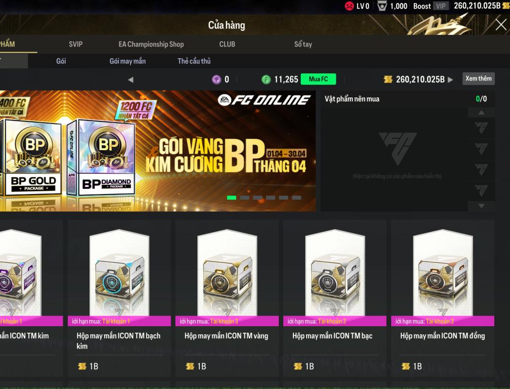 Acc mở thẻ sẵn 260k tỷ BP + 300 thẻ xịn sò + 11k2 FC