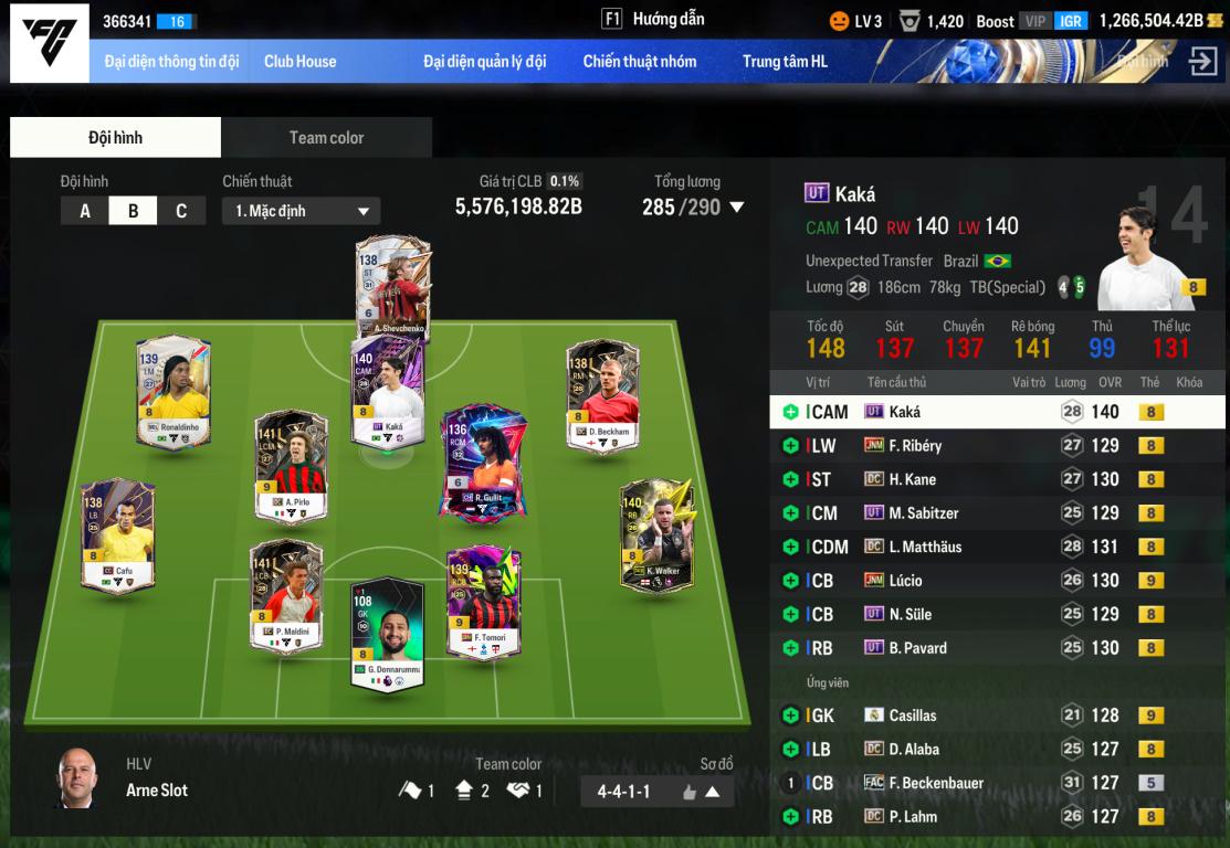 - Loại Acc: Acc đội hình