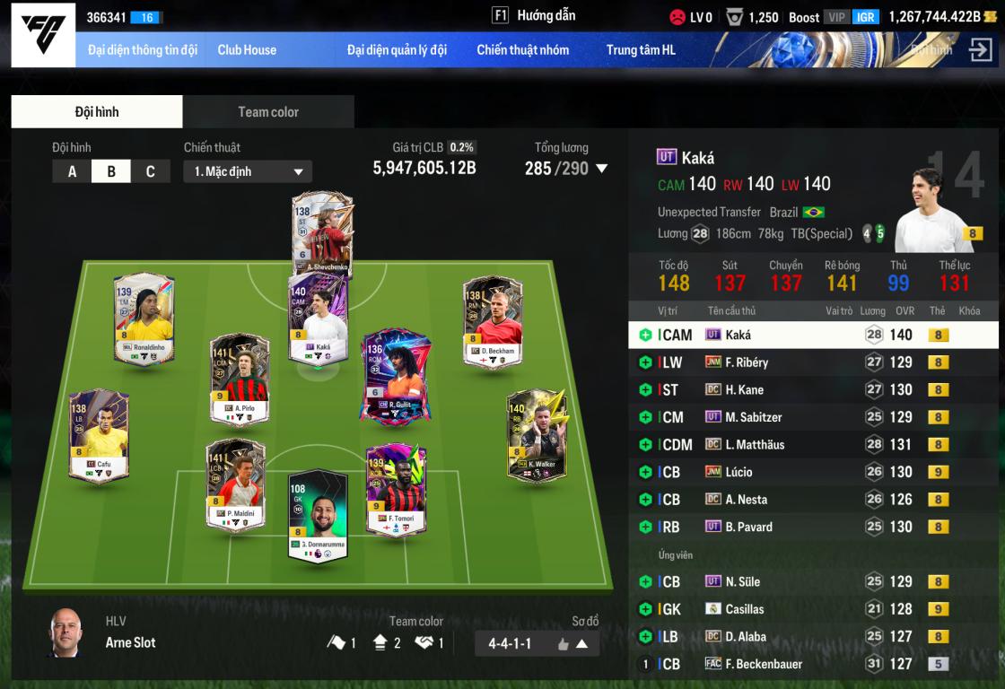 - Loại Acc: Acc đội hình