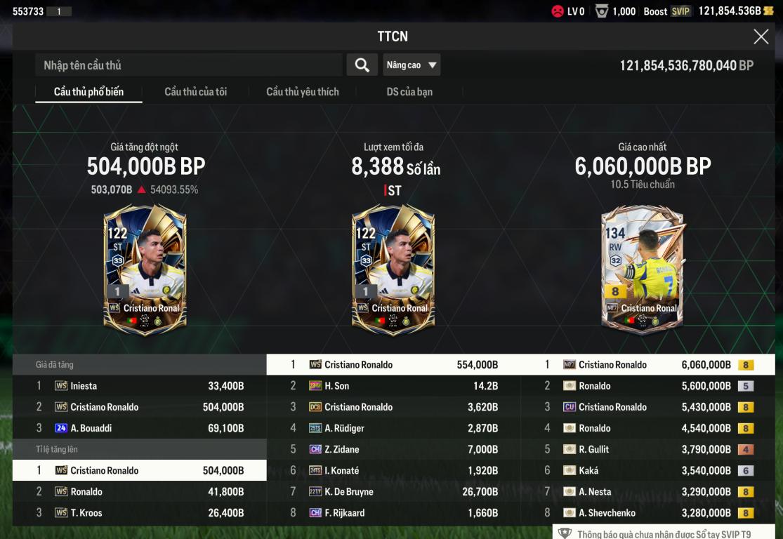 Giờ Reset Cầu Thủ