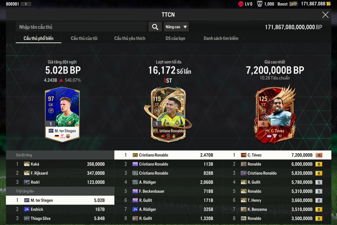 Acc 171k8 tỷ BP Trắng