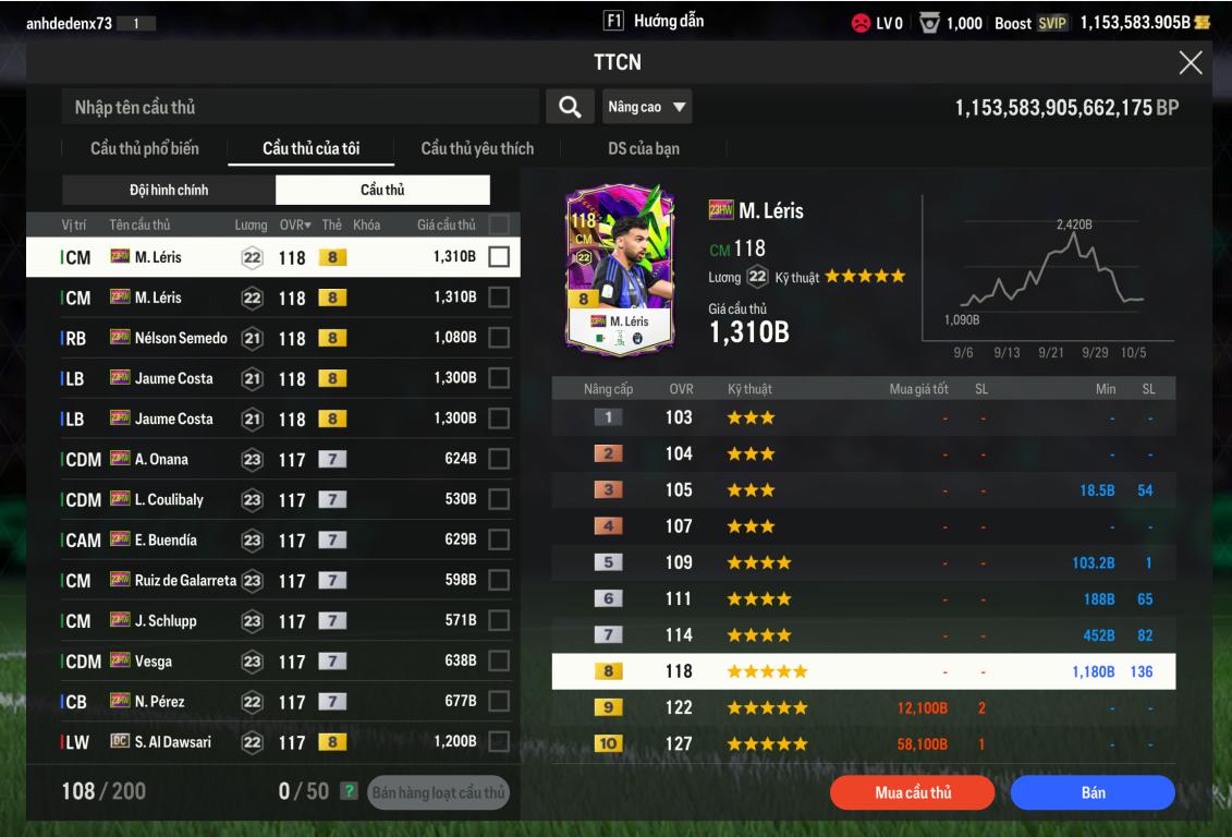 Acc 1tr150k tỷ BP Trắng - đổi dc MNF