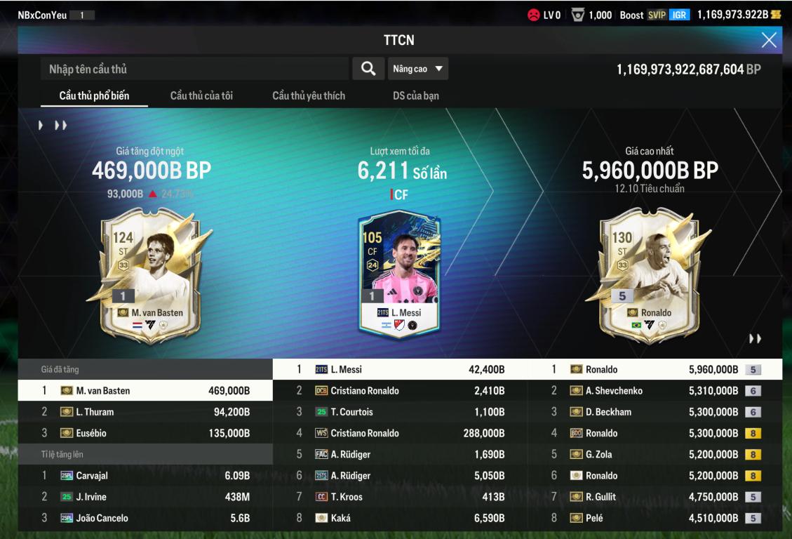 Acc 1tr169k tỷ BP Trắng - đổi dc MNF