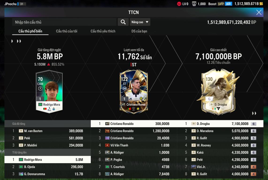 Acc 1tr5 tỷ BP Trắng - đổi dc MNF