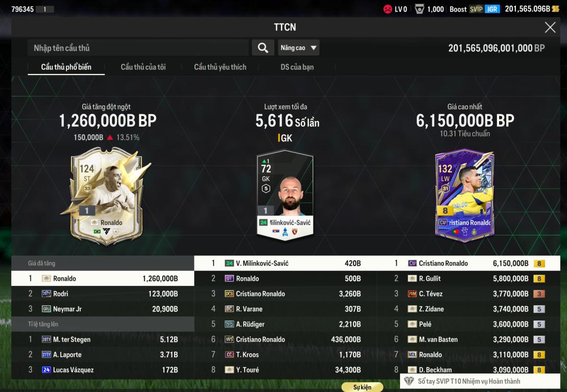 Acc 201k5 tỷ BP Trắng