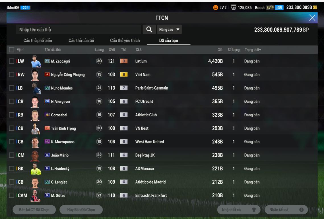 Acc 233k tỷ BP Trắng - đổi dc MNF - nhiều HLV - 111k Đào Tạo