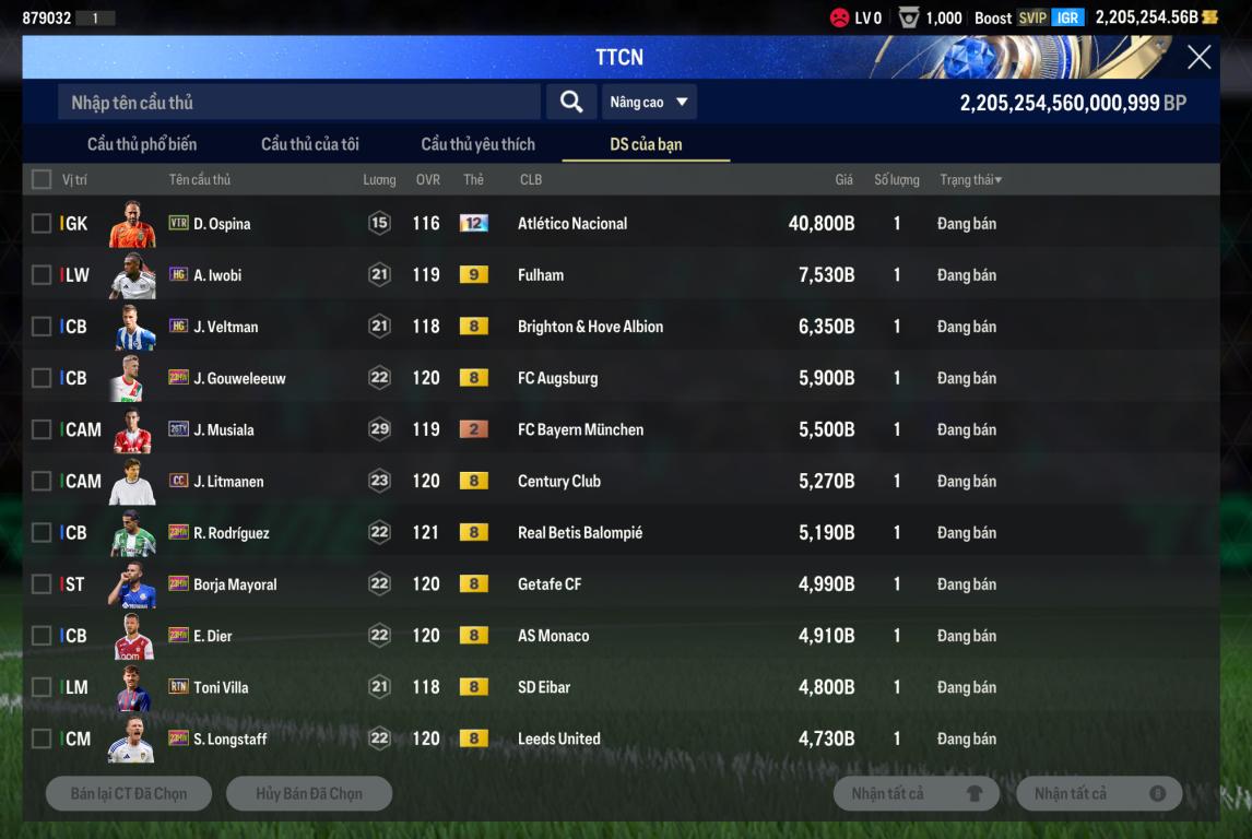 Acc 2tr2 tỷ BP Trắng .