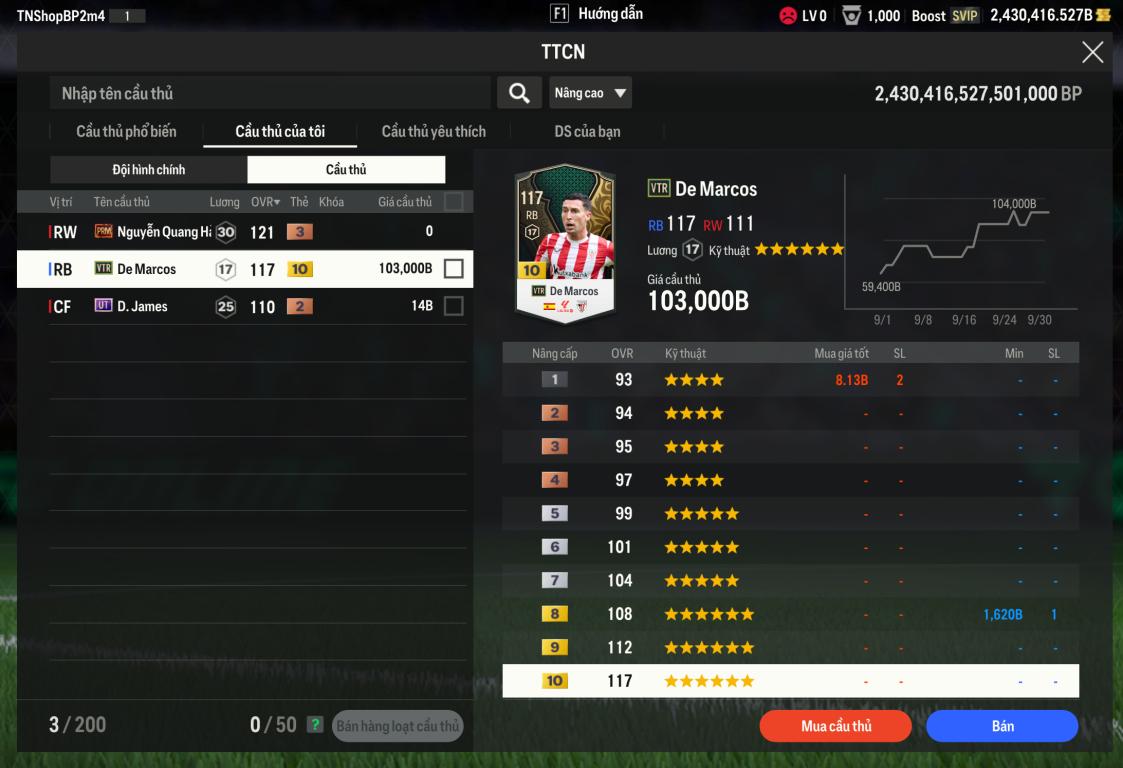 Acc 2tr4 tỷ BP Trắng