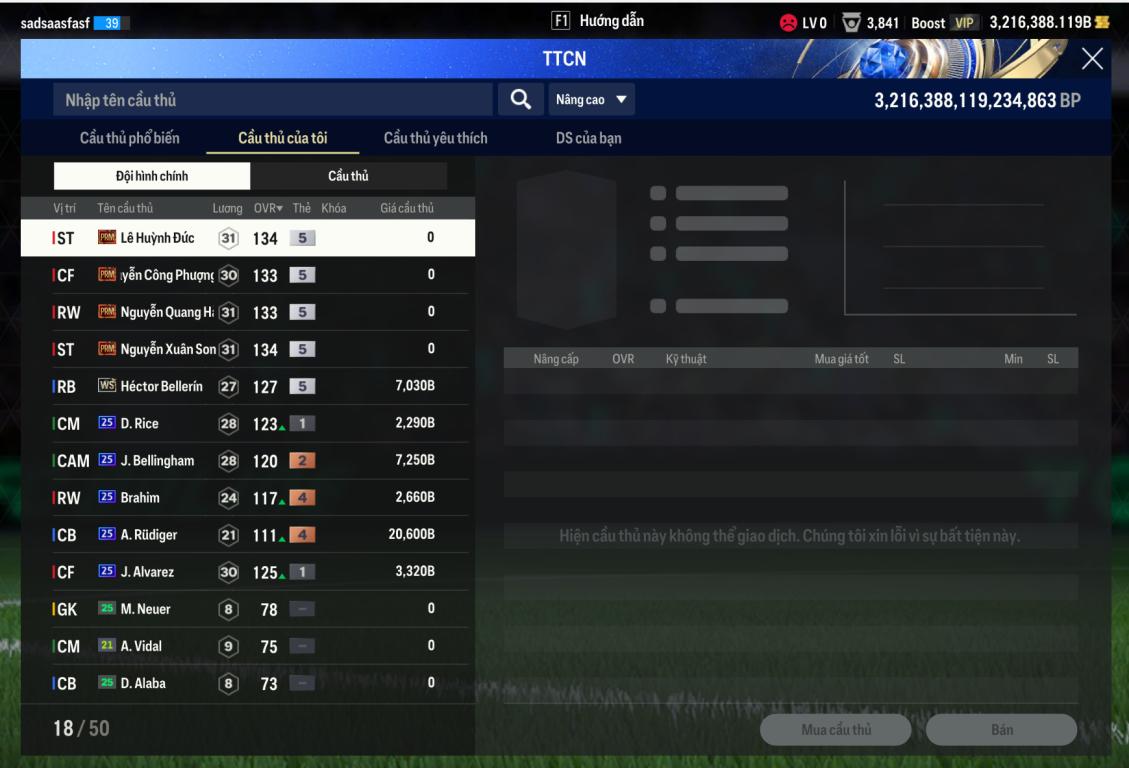 Acc 3216k tỷ BP Trắng - có bộ tứ VN +5 - đổi dc MNF