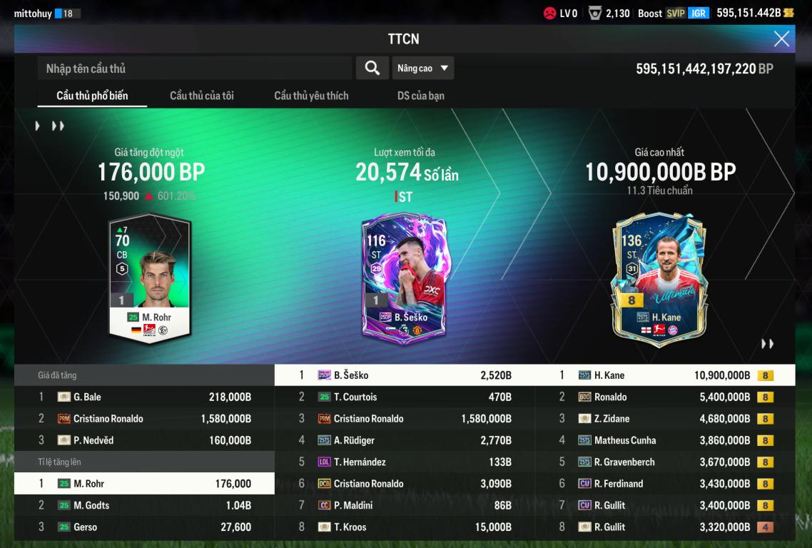Acc 595k1 tỷ BP Trắng - đổi dc MNF