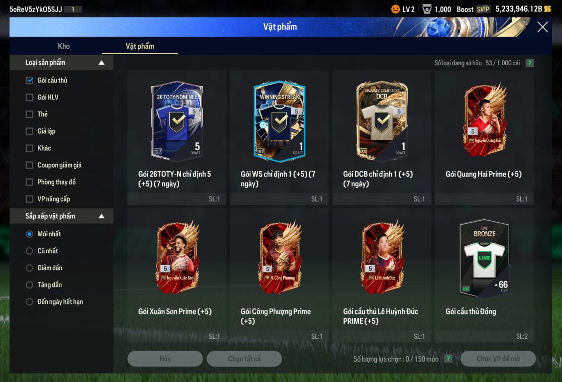 Acc 5tr2 tỷ BP Trắng - có bộ tứ VN +5 - đổi dc MNF