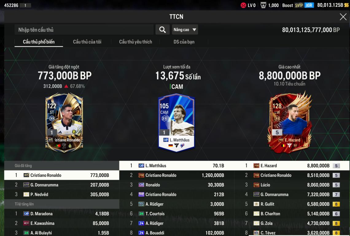 Giờ Reset Cầu Thủ