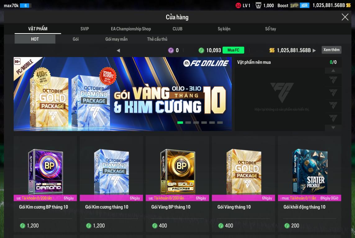 Acc có 11k6 FC + 1tr tỷ BP Trắng