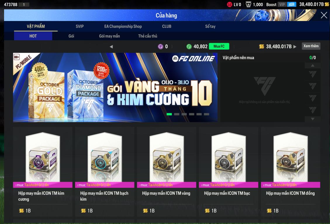 Acc có sẵn 40k8 FC - Free quà như ảnh