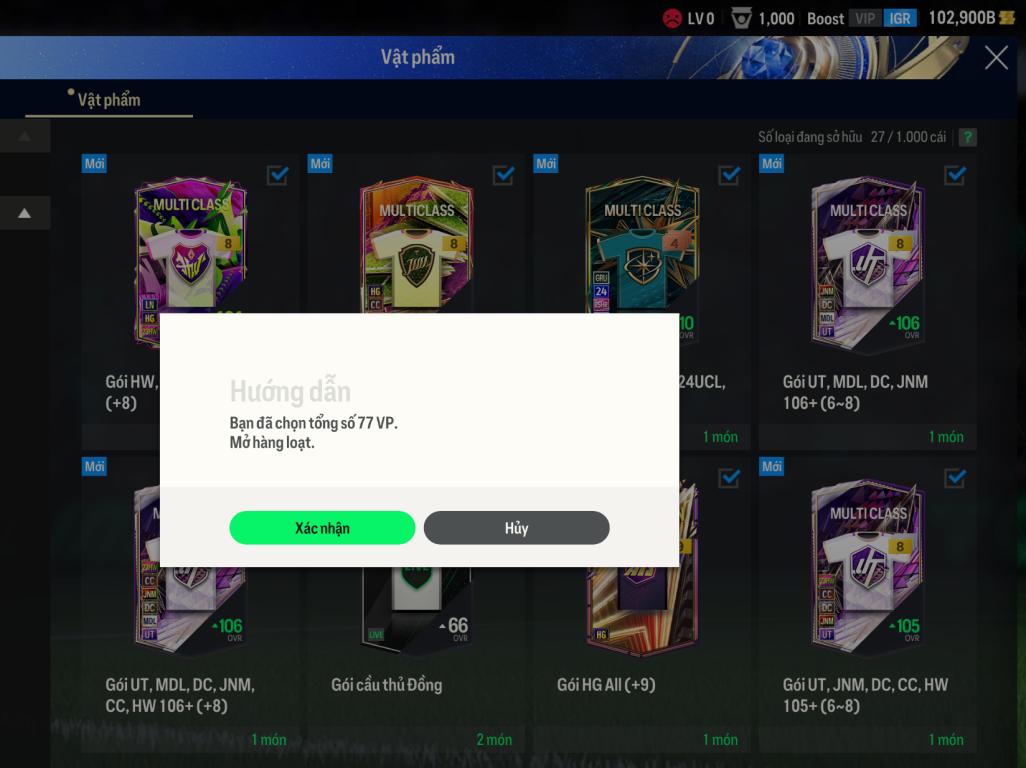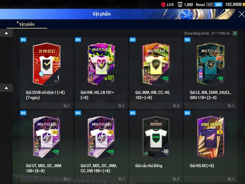 Acc mở thẻ random : có sẵn ~ 100k tỷ BP + ~ 100 thẻ xịn sò