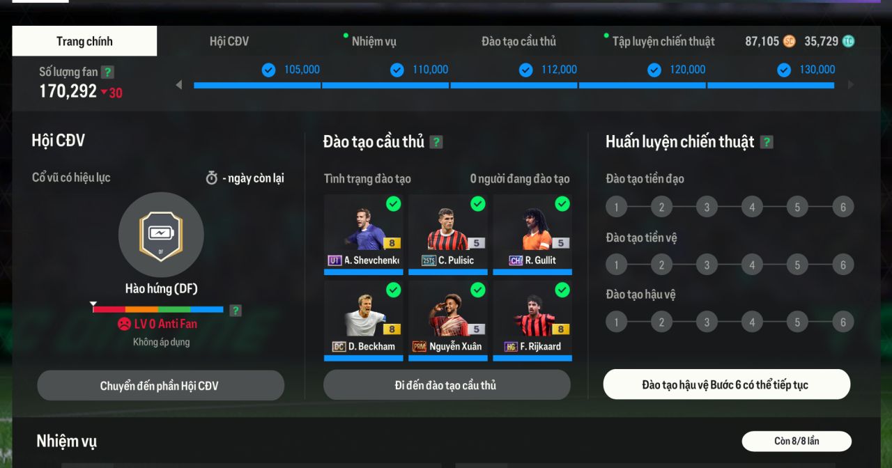 Giờ Reset Cầu Thủ