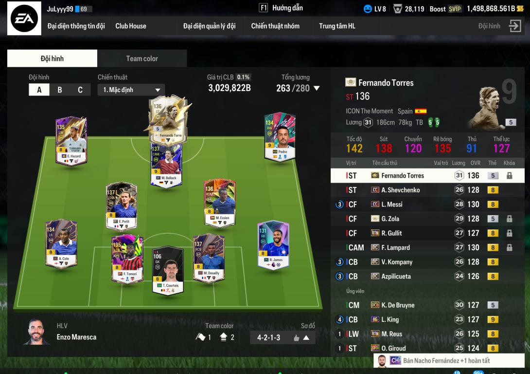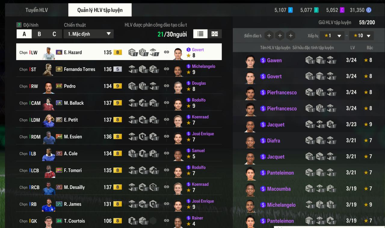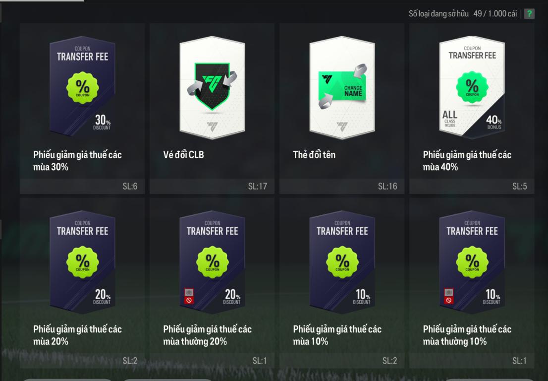 - Loại Acc: Acc đội hình