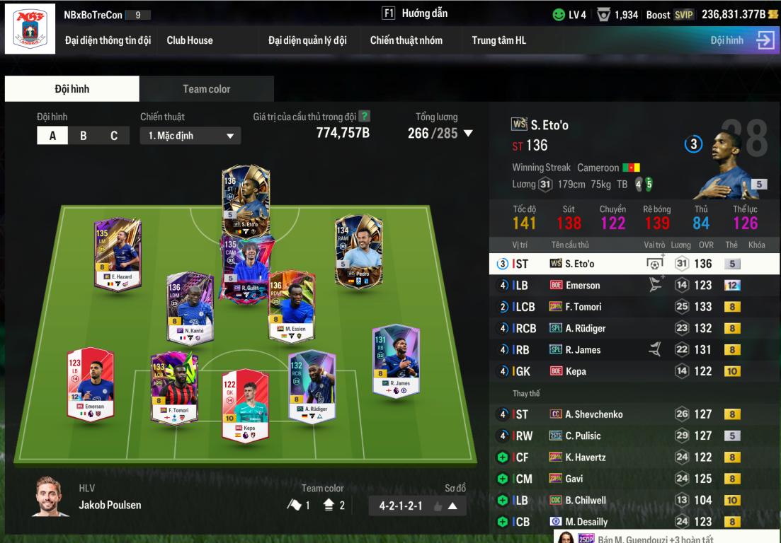 Team Chelsea 770k thừa 240k tỷ BP - đổi dc MNF