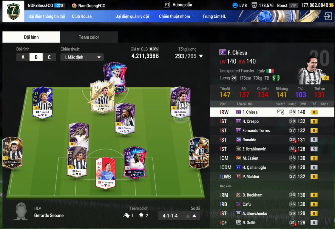 Team Juve 4tr2 tỷ thừa 170k tỷ BP - full đào tạo - đổi dc MNF