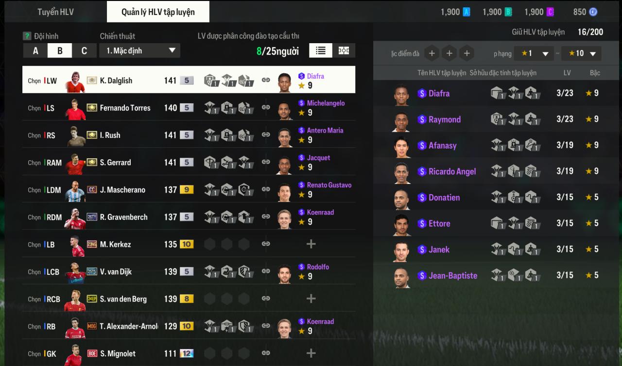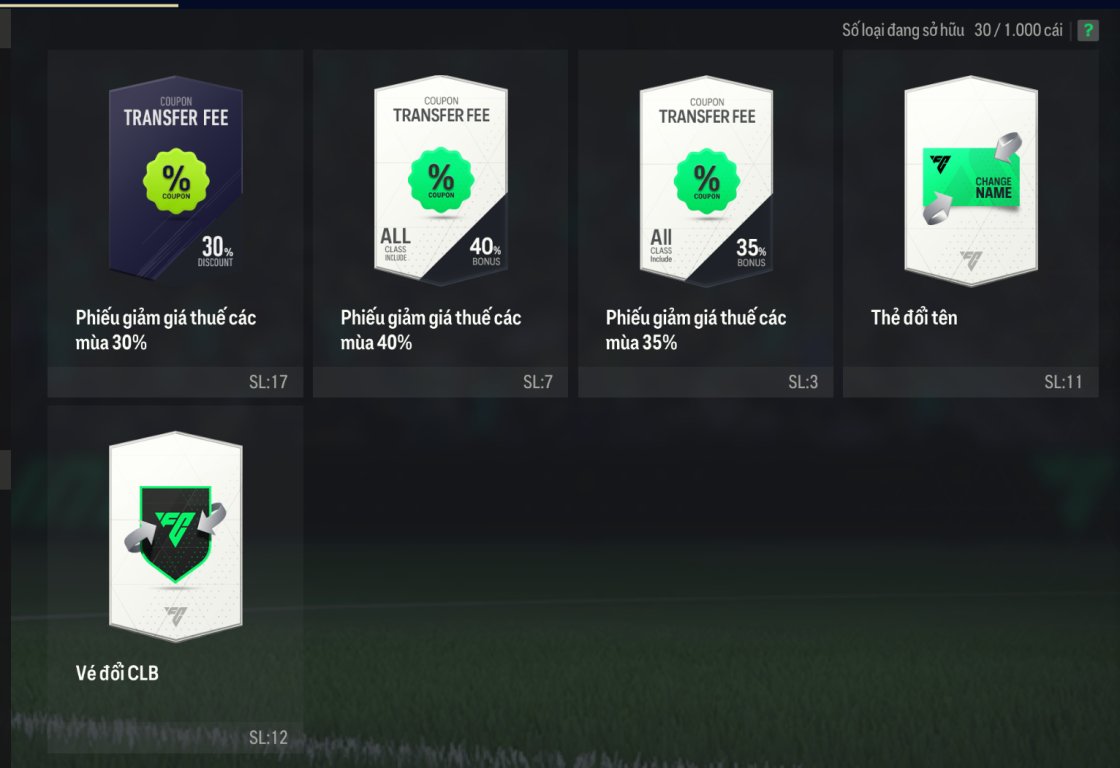 - Loại Acc: Acc đội hình