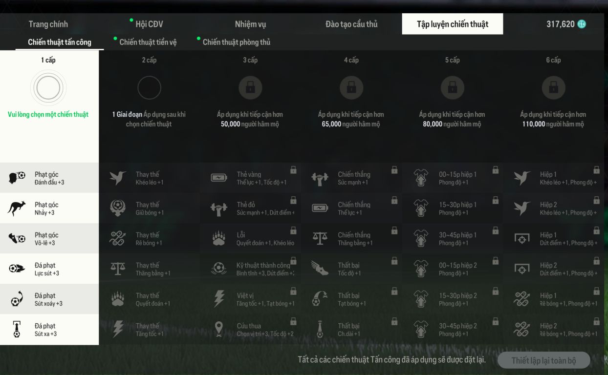 Giờ Reset Cầu Thủ