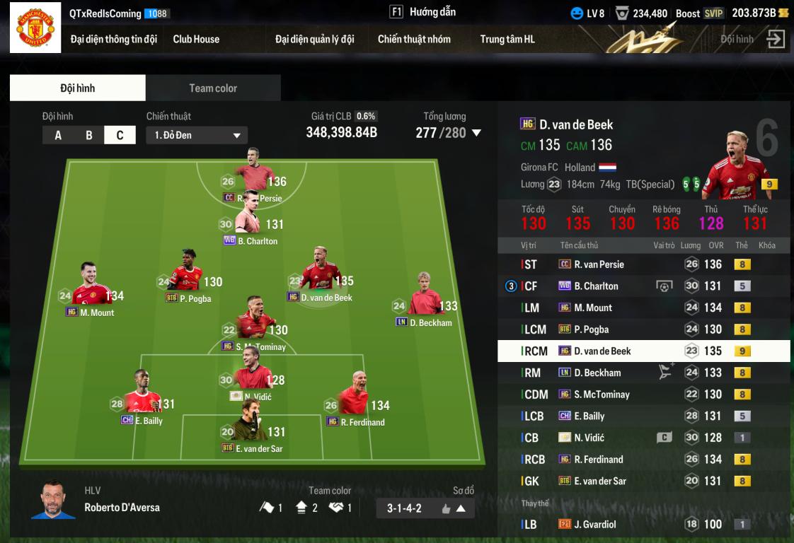 Team MU 348k có van de beek +9 - đổi dc MNF