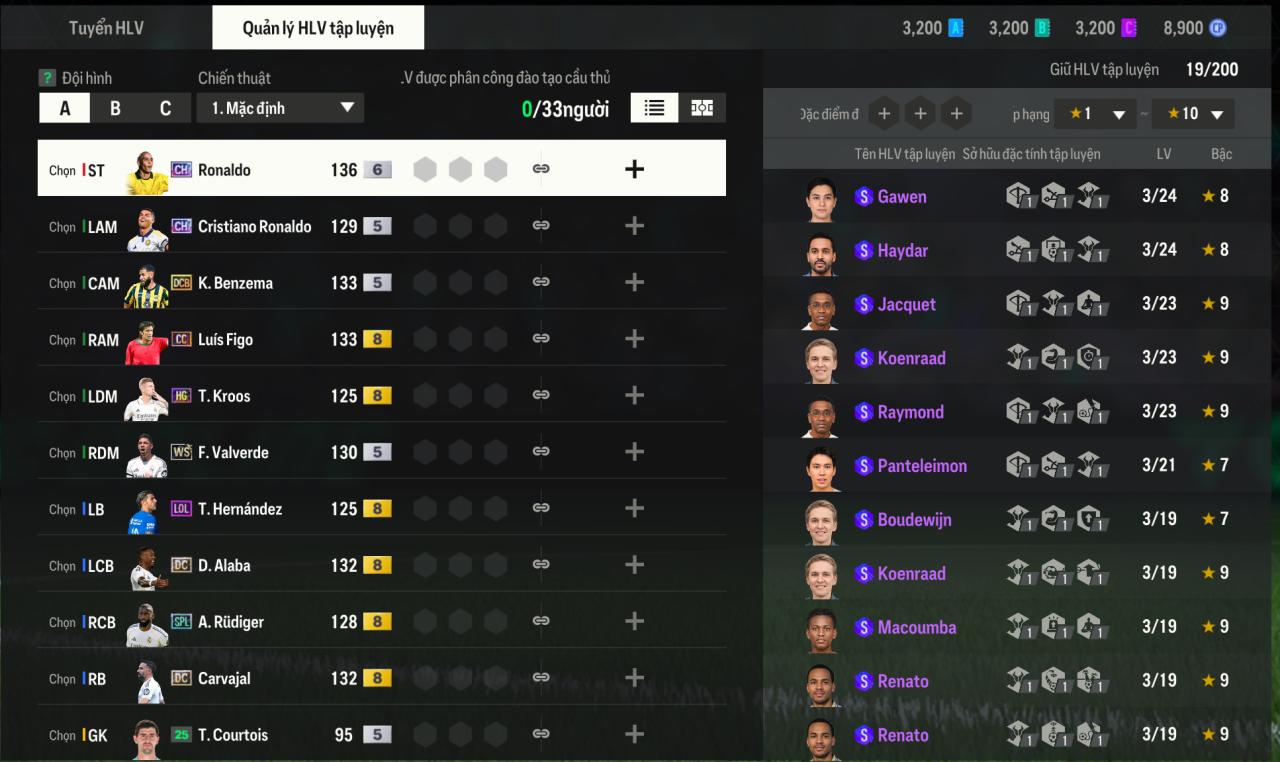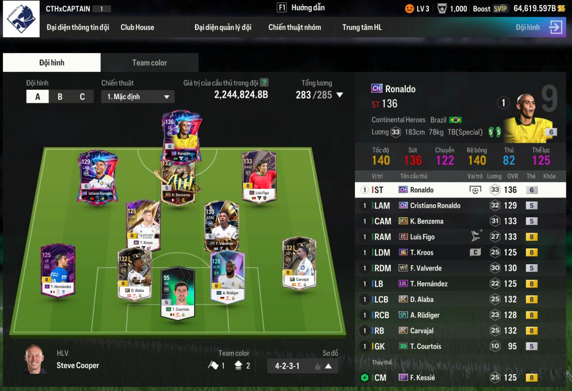 Team Real 2tr2 thừa 64k tỷ BP - HLV ổn - 50k đào tạo