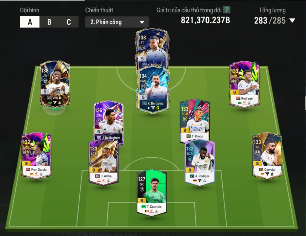 Team Real 820k thừa 15k tỷ BP - đổi dc MNF